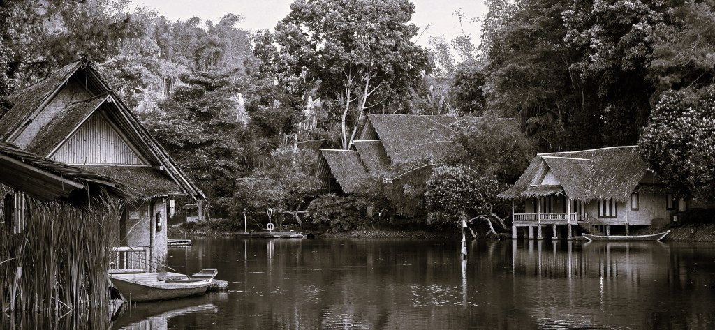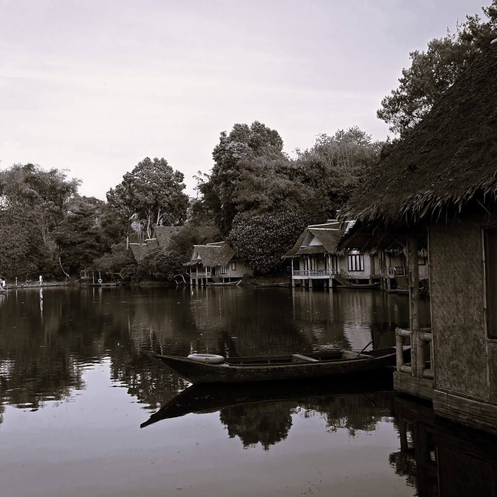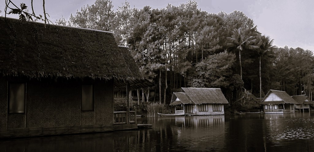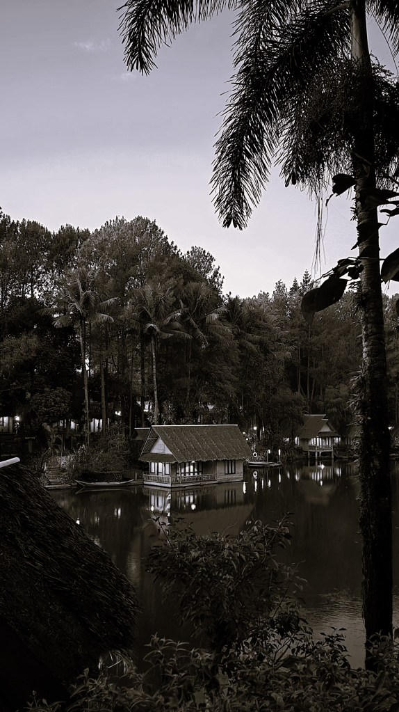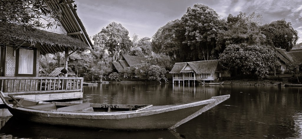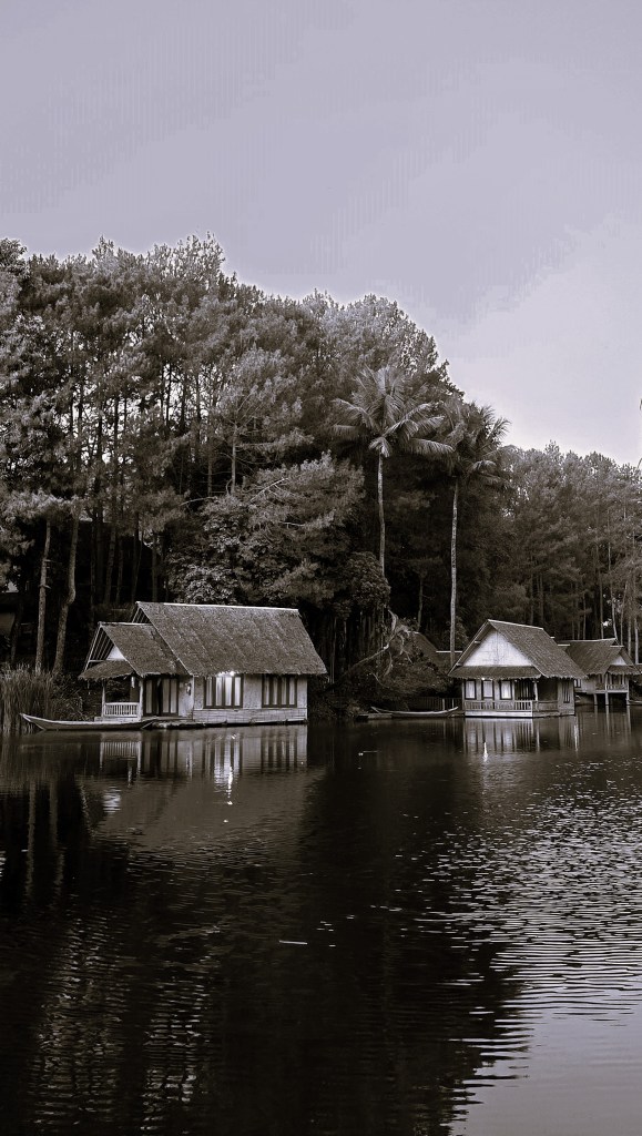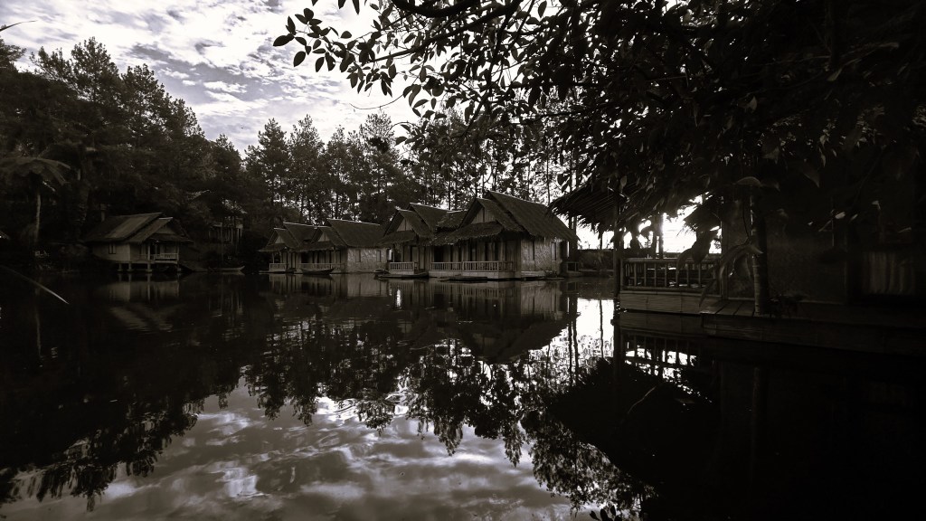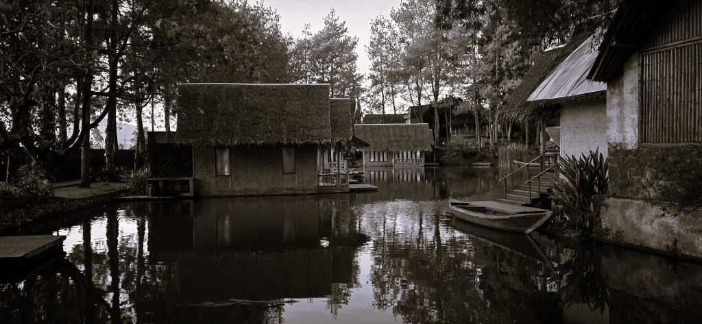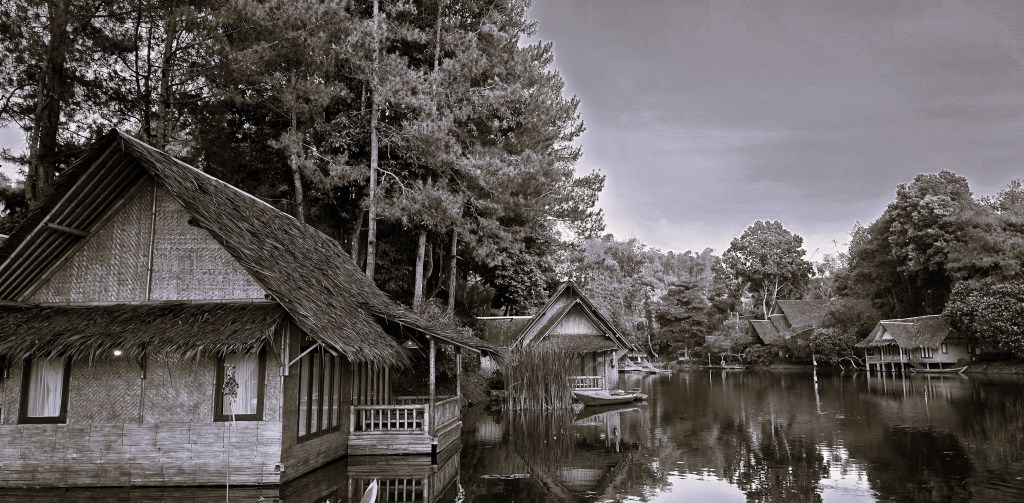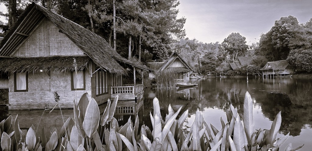 Kampung Sampireun dalam tangkapan monochrome