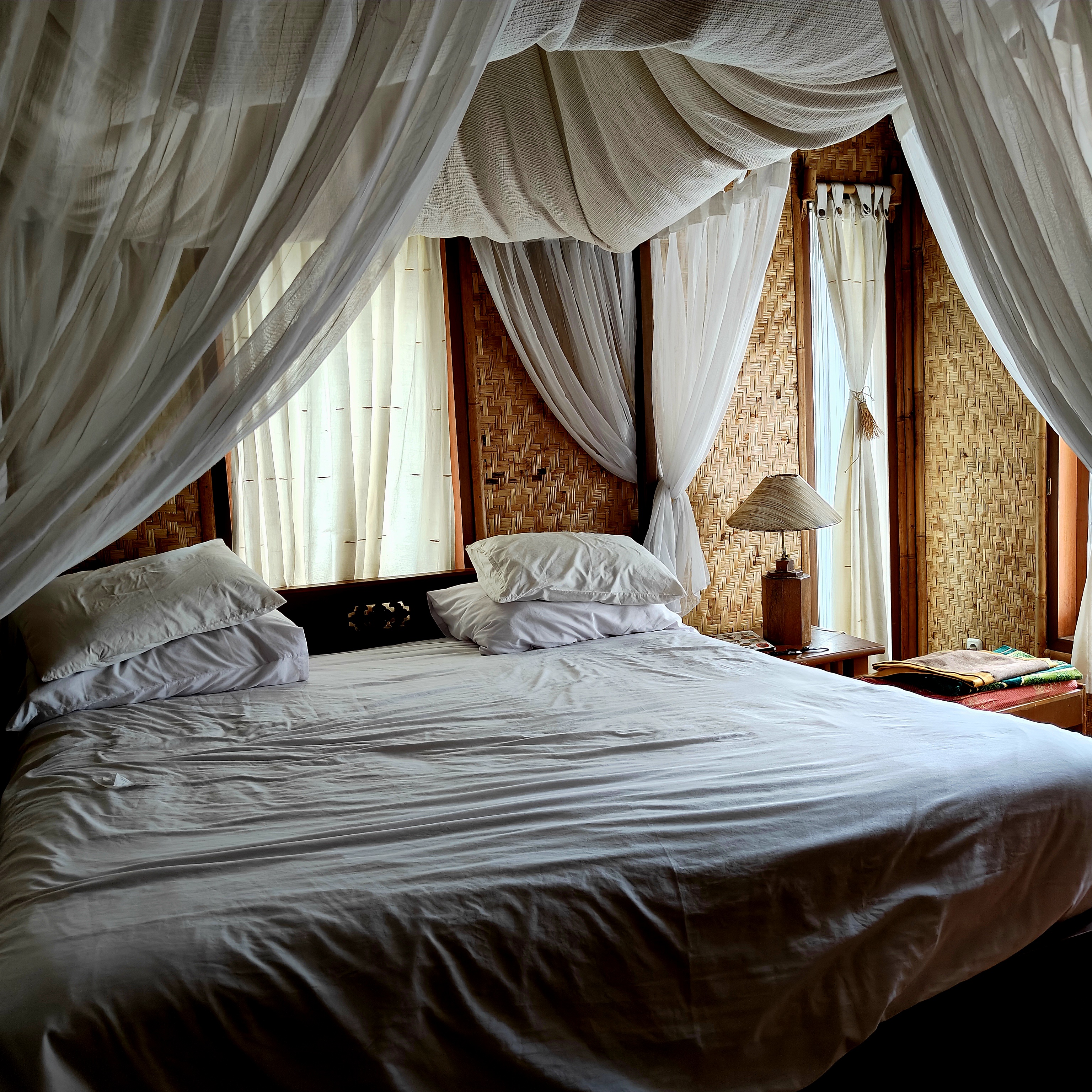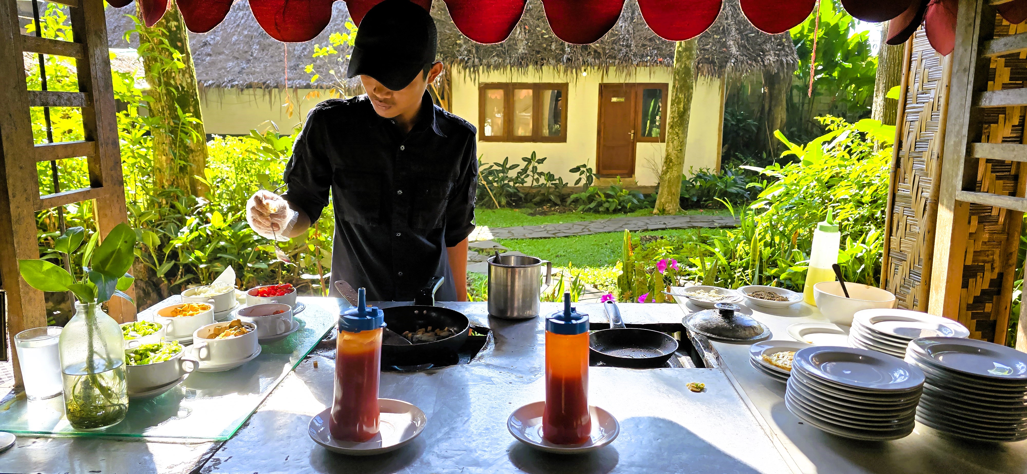 Our stay was at Kampung Sampireun, a resort with bamboo stages surrounding a lake and walls made of rooms. It took about an hour to get there from downtown Garut, and the roads were pretty narrow, so we had to be patient with the bikes in front of us. Funny enough, we had gone there back in 2012 but didn’t get to stay since we needed to book ahead back then.